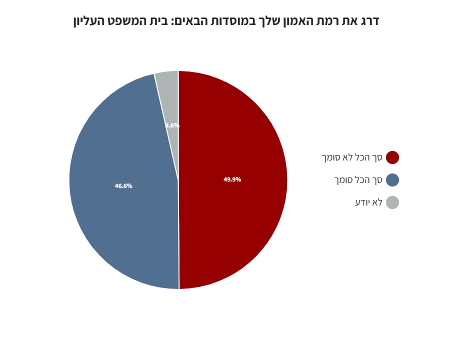 47% השיבו כי הם סומכים על בית המשפט העליון, לעומת 50% שאינם.