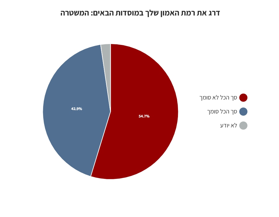 43% השיבו כי הם סומכים על משטרה, לעומת 55% שאינם.