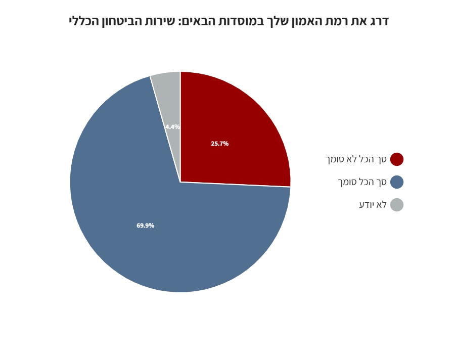 70% השיבו כי הם סומכים על שירות הביטחון הכללי, לעומת 26% שאינם.