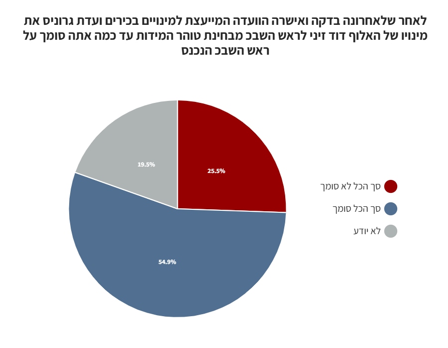 כ-55% מהמשיבים סומכים על ראש השב"כ הנכנס, דוד זיני.