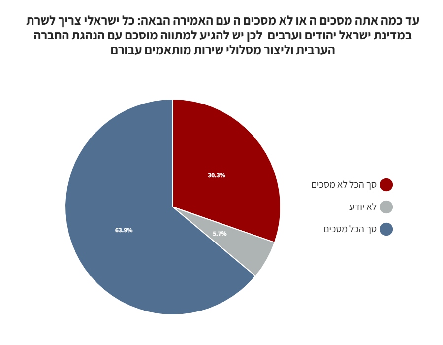 64% מסכימים כי כל ישראלי צריך לשרת במדינת ישראל – יהודים וערבים, לכן יש להגיע למתווה מוסכם עם הנהגת החברה הערבית וליצור מסלולי שירות מותאמים עבורם.