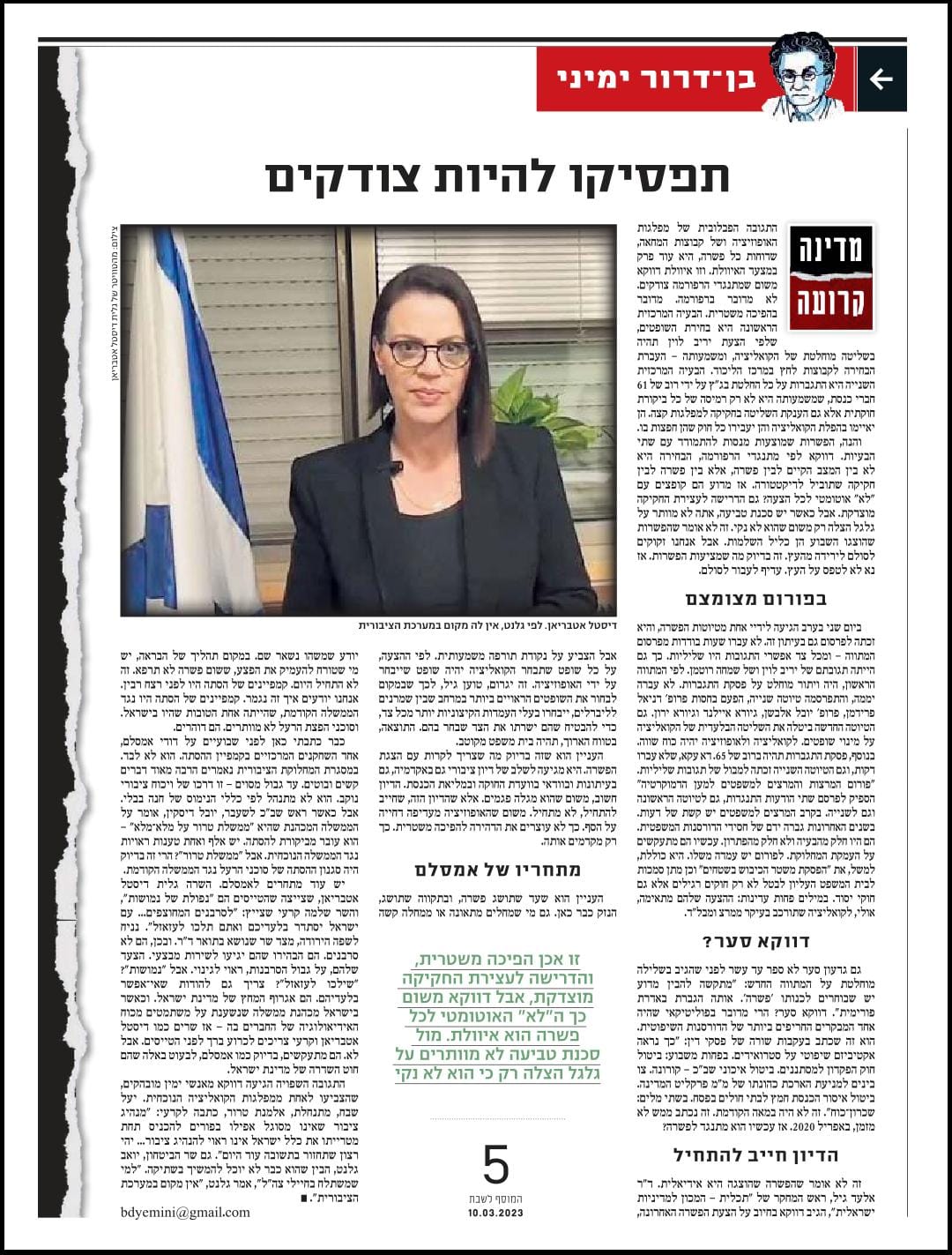 ידיעות אחרונות | בן דרור ימיני | 10.3.2023