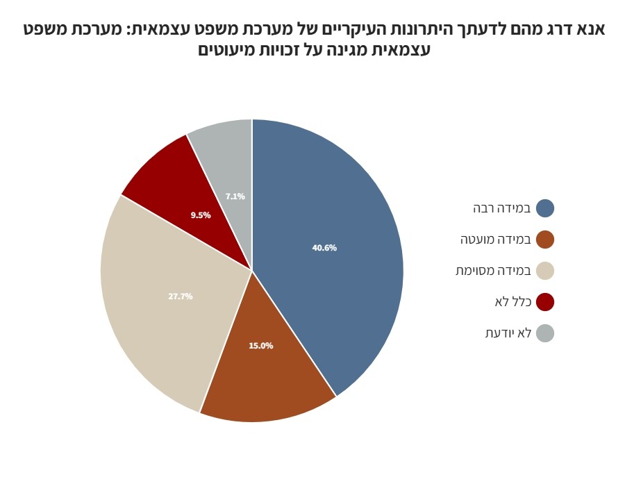 כ-68% מהמשיבים סבורים כי מערכת משפט עצמאית מגינה על זכויות מיעוטים.