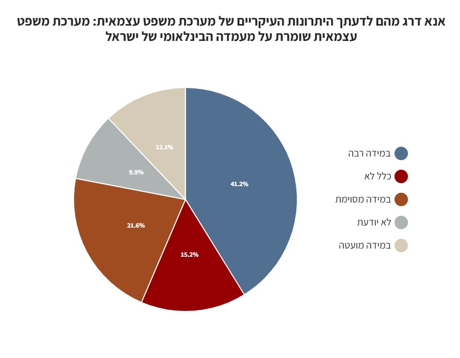 כ-62% סבורים כי מערכת משפט עצמאית שומרת על מעמדה הבינלאומי של ישראל.