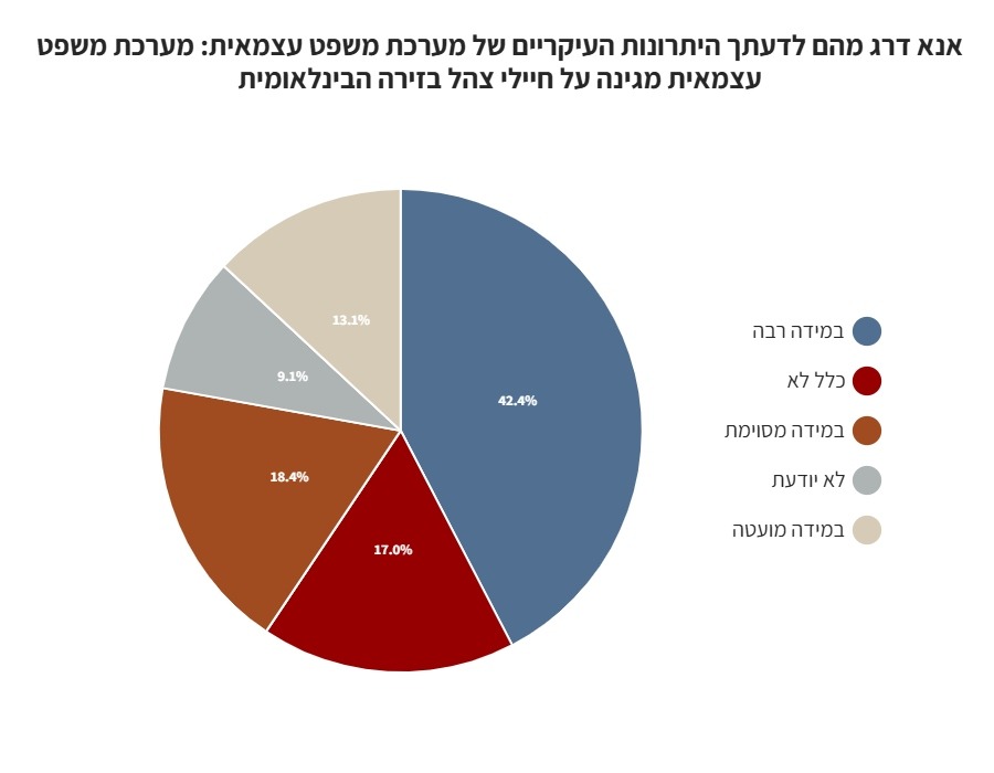 כ-60% סבורים כי מערכת משפט עצמאית מגינה על חיילי צה"ל בזירה הבינלאומית.