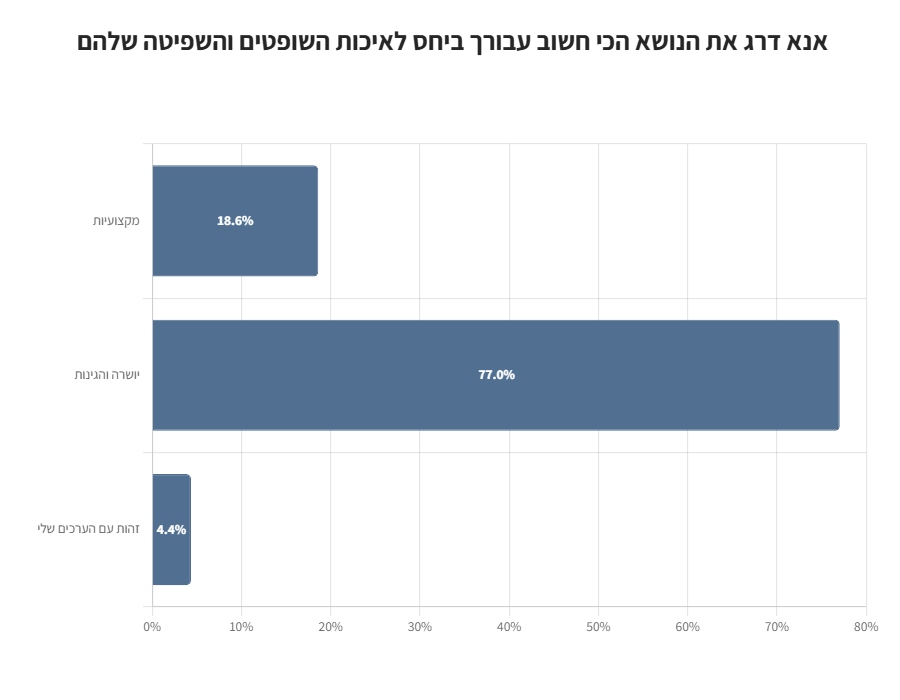קרוב ל-80% מהנשאלים סבורים כי הנושא הכי חשוב עבורם הוא היושרה וההגינות של השופטים.