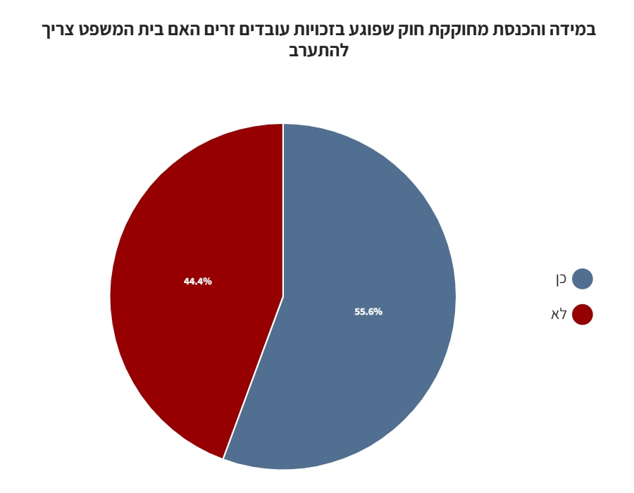 כ-55% מהנשאלים השיבו כי על בג"צ להתערב במקרה והכנסת תחוקק חוק שיפגע בעובדים זרים.