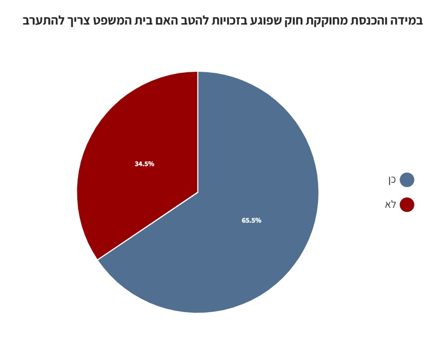 כשני שליש מהנשאלים השיבו כי על בג"צ להתערב במקרה והכנסת תחוקק חוק שיפגע בזכויות להט"ב.