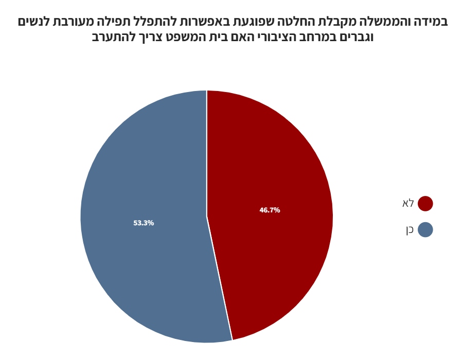 כ-53% מהנשאלים השיבו כי על בג"צ להתערב במקרה והכנסת תחוקק חוק שיפגע באפשרות להתפלל תפילה נפרדת במרחב הציבורי.