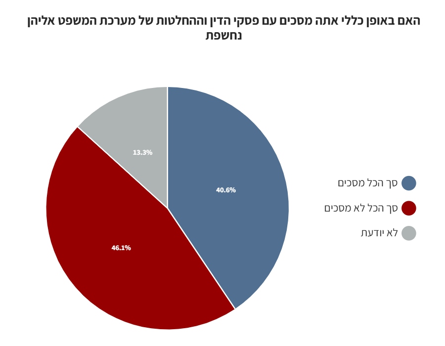 46% מהנשאלים כי אינם מסכימים עם פסקי הדין אליהם נחשפו, ביחס ל40% שמסכימים עימם.