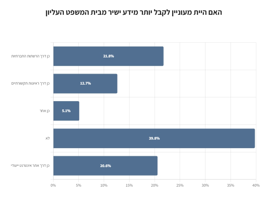 כ-60% מהנשאלים השיבו כי הם מעוניינים לקבל יותר מידע ישיר מבית המשפט העליון.