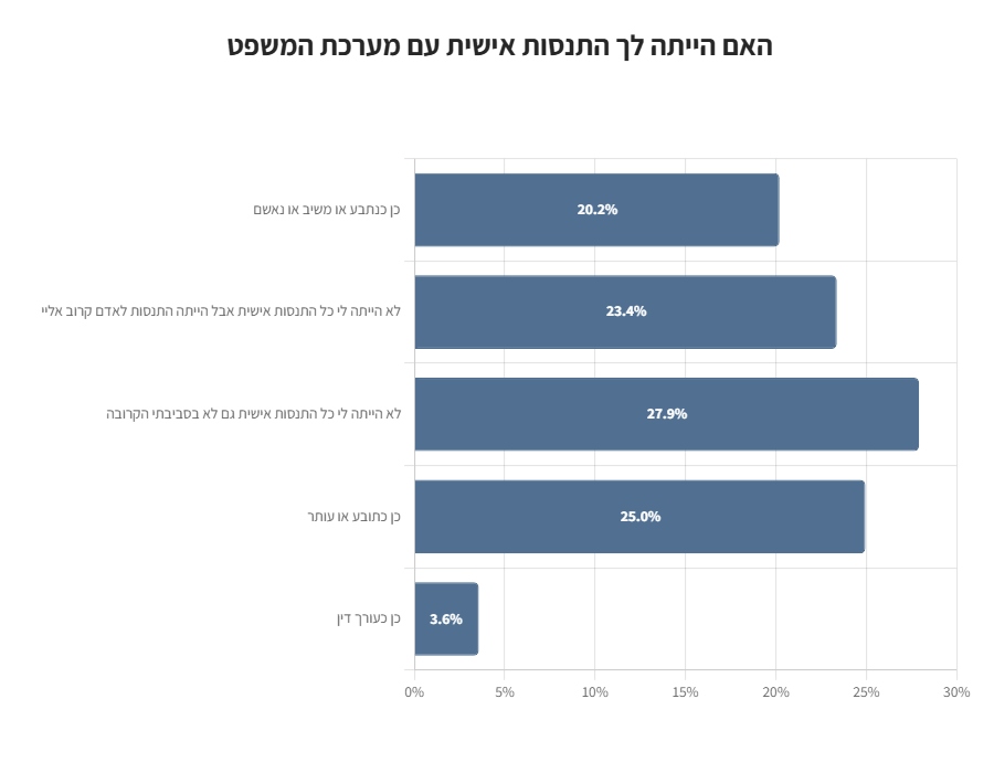 מעל 50% מהנשאלים לא התנסו באופן אישי עם מערכת המשפט הישראלית.