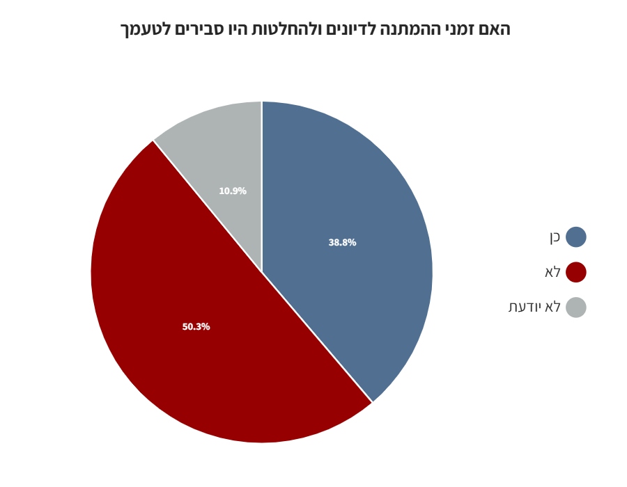 מעל 50% מהנשאלים השיבו כי זמן ההמתנה לפסיקה אינו סביר או סביר במידה מועטה בעיניהם.