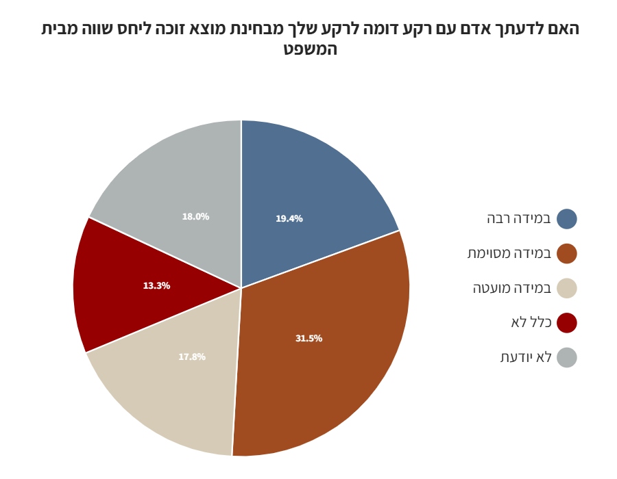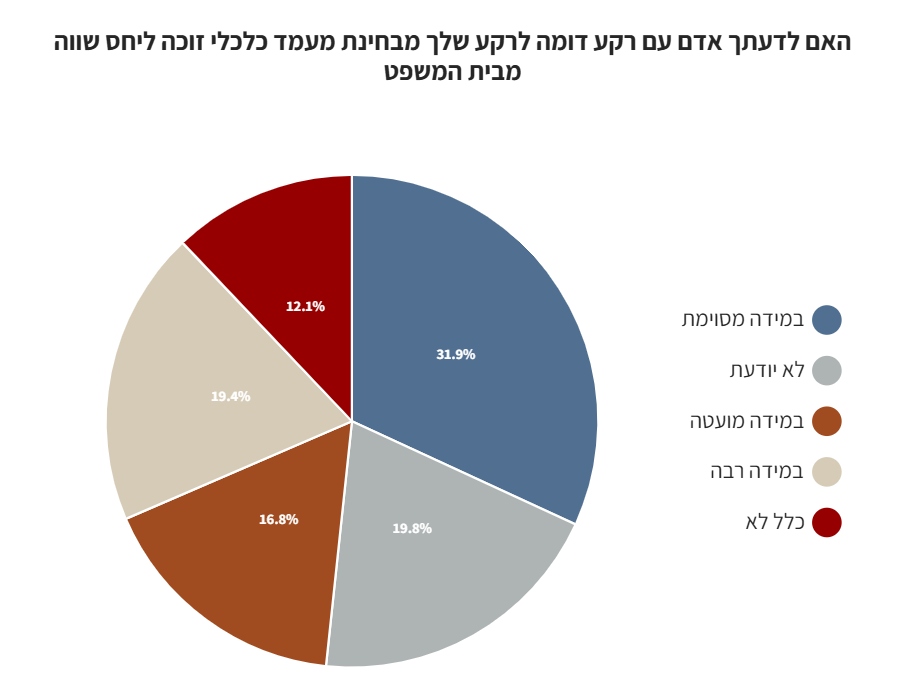 כמחצית מהנשאלים השיבו כי לדעתם, אדם בעל רקע דומה מבחינת מוצא זוכה ליחס שווה מבית המשפט.