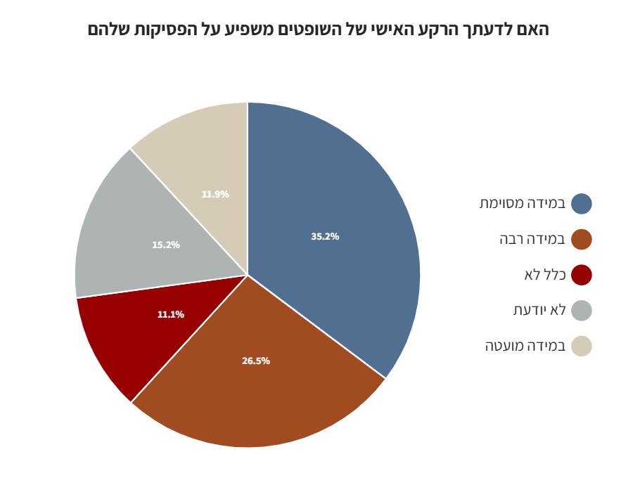 מעל 70% מהנשאלים השיבו כי הרקע האישי של השופטים משפיע על הפסיקות שלהם.