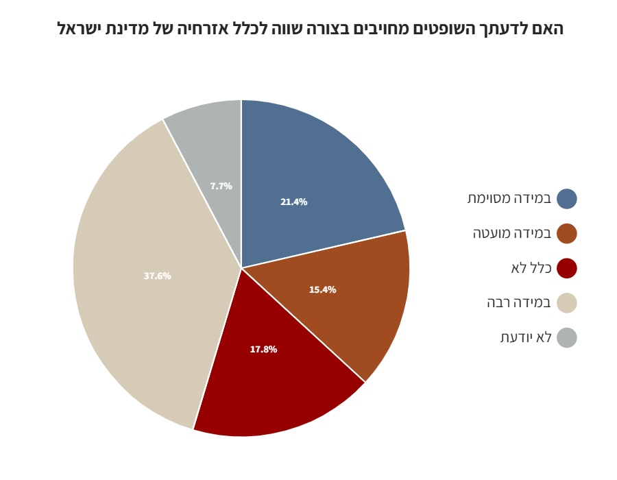 כ-59% מהנשאלים השיבו כי לדעתם השופטים מחויבים  לשיפוט שוויוני לכלל אזרחי ישראל.