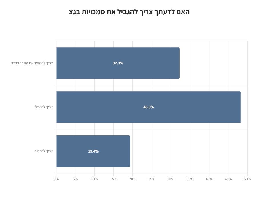 הציבור חלוק בדעתו ביחס להגבלת סמכויות בג"ץ. יתרון קטן – 51.7% לאלו החושבים שלא צריך להגביל או שצריך אף להרחיב.