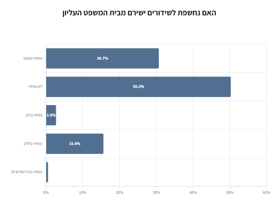 כ-50% מהנשאלים השיבו כי לא צפו בשידורים ישירים מדיוני בית המשפט העליון.