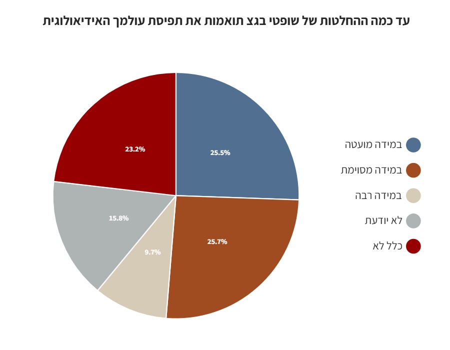 כ-48% מהנשאלים השיבו כי פסיקות בג"צ אינן תואמות את תפיסת עולמם האידיאולוגית.